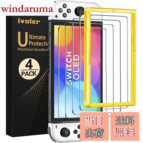 【送料無料】[4枚入り] [Switch 有機ELモデル対応][改良モデル] iVoler OLED 保護 ガラスフィルム スイッチ 保護フィルム[ガイド枠付き] 強靭9H 3Dラウンドエッジ加工 撥水撥油 指紋防止 飛散防止 貼付道具付 自己吸着 気泡防止 極薄