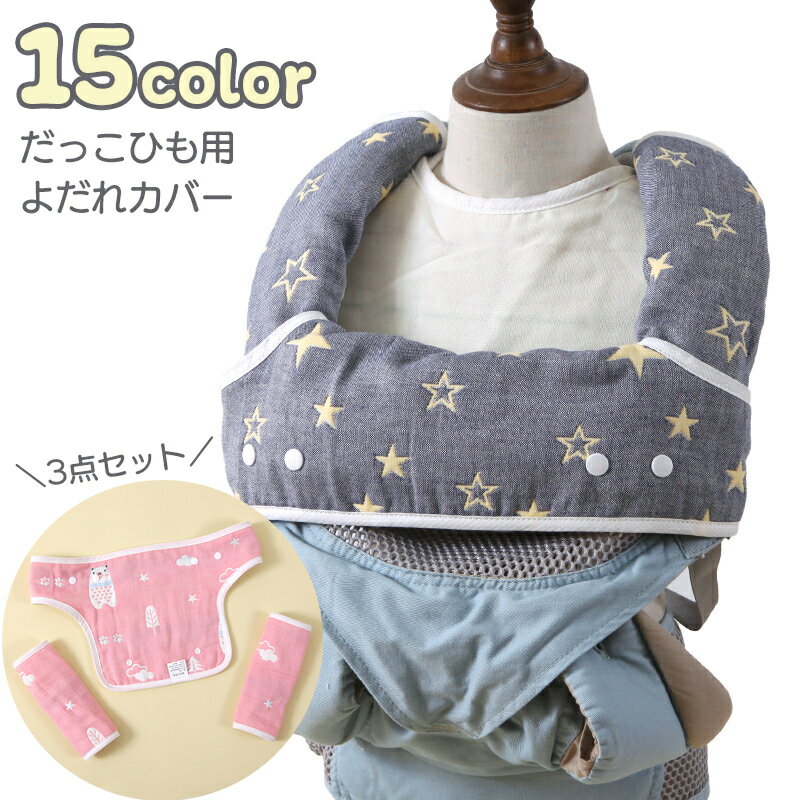 送料無料 抱っこ紐カバー よだれカバー よだれパッド 3点セット 赤ちゃん ベビー用品 抱っこひも ベビーキャリー おんぶ紐 スナップボタン アニマル かわいい