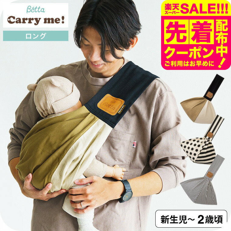 Betta ベッタキャリーミー! ベビースリング ロングタイプ 日本製 抱っこ紐 新生児〜11.3kg対応 ロック付 チャック 立体裁断 横抱き 縦抱き 腰抱き 軽量 コンパクト 長さ調整可能 リラックス おしゃれ 無地 柄物 コットン素材 出産祝い 赤ちゃんとママパパに安心! ベビー用品