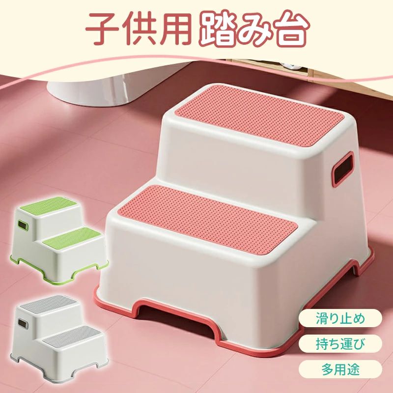 【激安販売中!】踏み台 2段 キッズ 子供 便利 ステップ台 おしゃれ キッズステップ ふみ台 高さ調節 スツール 洗面所 トイレトレーニング 男の子 女の子 足置き台 安全 安定性 玄関 庭 リビング キッチン 風呂台 階段チェア 手すり付き 滑り止め 幼児 踏台