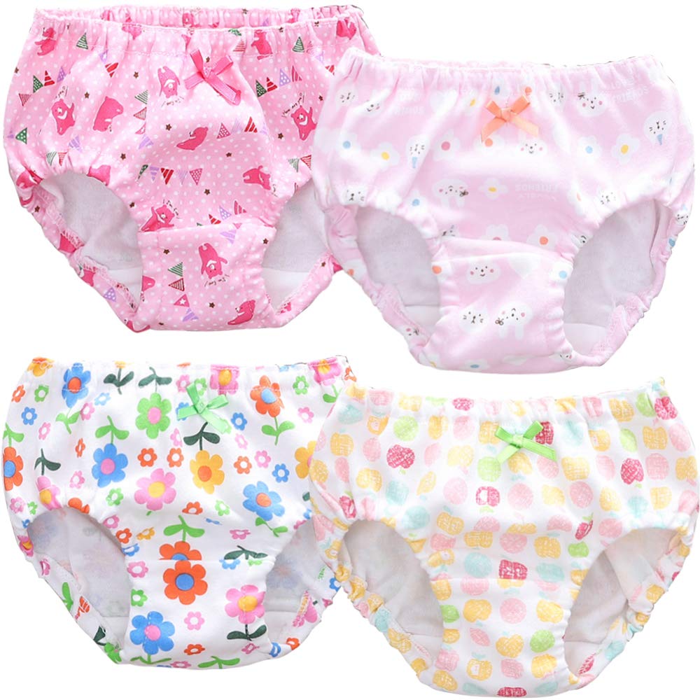 【送料無料】[OU.OU] 女の子 パンツ 綿100% 通気 女児用ショーツ 下着 肌着 柔らかい 吸湿 快適 キッズ ガールズ 幼稚園 子供服 短パン ベビー 水玉 風船 子犬 90 100 110 120 130 色:りんごカブス4枚セット、サイズ:140