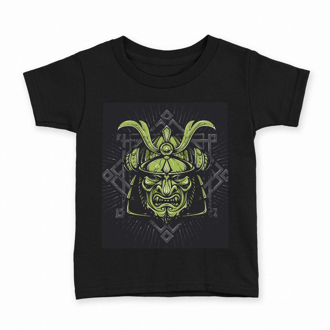 tシャツ キッズ 半袖 黒地 ブラック デザイン 90 100 110 120 130 140 150 160 Tシャツ ティーシャツ T shirt 008044 兜 緑 グリーン イラスト