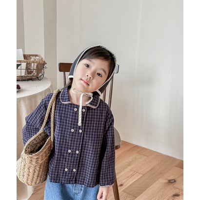アイモハ aimoha 【aimohaーKIDSー】韓国子供服 ギンガムチェックブラウスシャツ (ブルー)