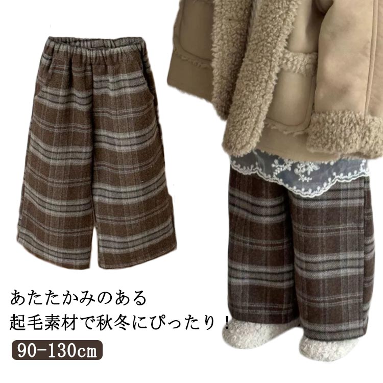 カジュアルパンツ ワイドパンツ 子供服 やわらかい キッズ ベビー ポケット付き パンツ ズボン 子供服 キッズ 起毛チェック柄ワイド 女の子 冬用 裏ボア 長パンツ ボトムス 秋冬 厚手 ボア ズボン あったか 裏起毛 ロング丈 パンツ ゆったり 防寒 通園 通学 送料無料