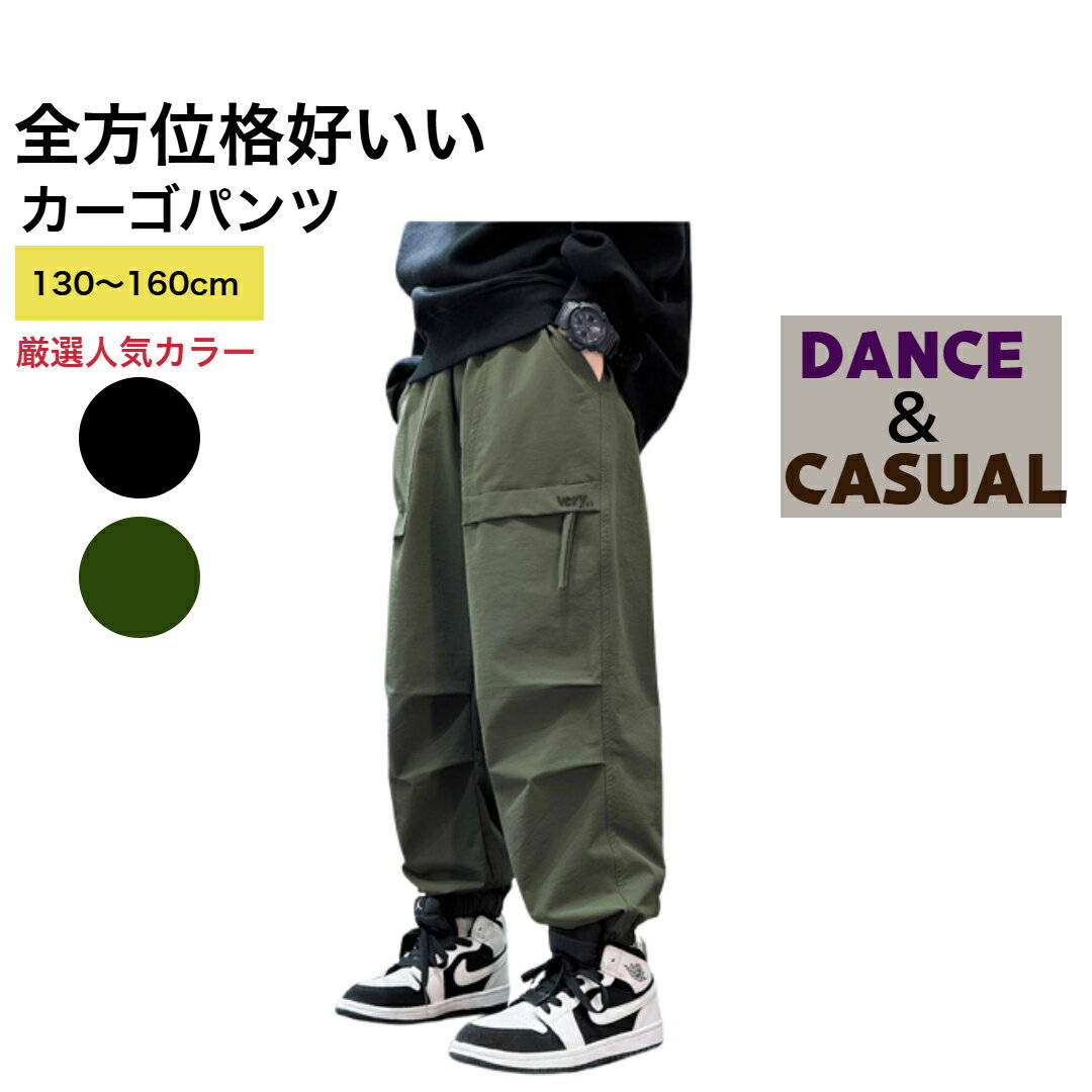 送料無料!1日以内発送♪カーゴパンツ キッズ 子供服 [130~160cm] ブラック グリーン 黒 緑 2色 ダンス 程よい厚さ、秋、冬用 動きやすい 汚れも洗濯にも強い 履き心地抜群