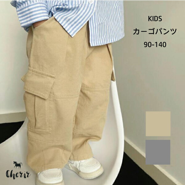 キッズ カーゴパンツ ワイド ベージュ チャコールグレー 男の子 ユニセックス ダンス 女の子 90 100 110 120 130 140 ビッグシルエット ポケット カジュアル ズボン ボトムス コットン 綿 子供服 韓国ファッション 送料無料 ポスト投函
