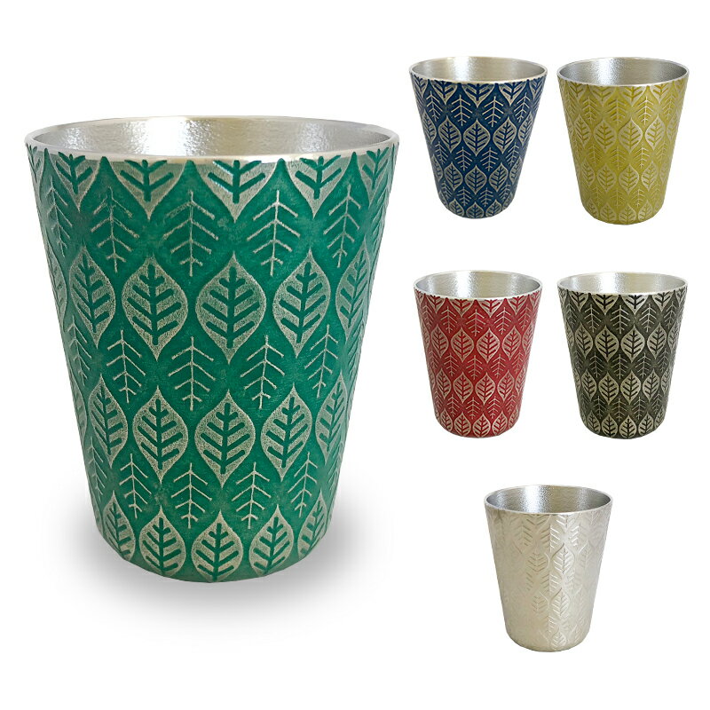 商品説明サイズ/容量直径70×高さ85mm/200ml材質錫色青・緑・黄・朱・黒・白商品説明かわいい木の葉柄の錫製酒器です。ビールを注ぐと、きめ細やかな泡が立ち、クリーミーな泡の舌触りでより美味しく楽しめます。注意事項錫は柔らかい金属ですので落とすとへこみます。熱伝導率が高い為、熱いものを入れると火傷する恐れがあります。長い間使用していると変色する場合があります。食洗器・電子レンジの使用はできません。お手入れ方法ご使用後は、水またはぬるま湯で、中性洗剤を使いスポンジの柔らかい方で洗ってください。洗い終わった後は、水気を十分に拭き取ってください。水滴を残すとシミになる恐れがあります。傷が付く為、金属たわしや研磨剤の入ったものはご使用にならないでください。【大阪錫器】タンブラー はっぱ錫器の歴史は古く、紀元前1500年前エジプト王朝の古代都市で錫の壺が発掘されています。日本へは約1300年前、遣隋使・遣唐使によって中国から渡来しました。今も鋳込みロクロで挽く、昔ながらの方法でひとつひとつ丹念に作られています。伝統工芸品として承認された「大阪浪華錫器」です。商品紹介お酒の味は器によって変わると言われています。イオン効果の大きい錫の器に入れたお酒は、雑味のないまろやかな風味となります。大阪錫器の商品は全て桐箱入りなので贈り物にオススメです。商品詳細内側は凸凹のあるディンプル仕上げです。着色には天然うるしを使用しています。カラー・パターン バリエーション青緑黄朱黒白スタッフのコメント200mlという程よい容量が気に入っています。子供でも持ちやすいサイズなので家族みんなで使っています。