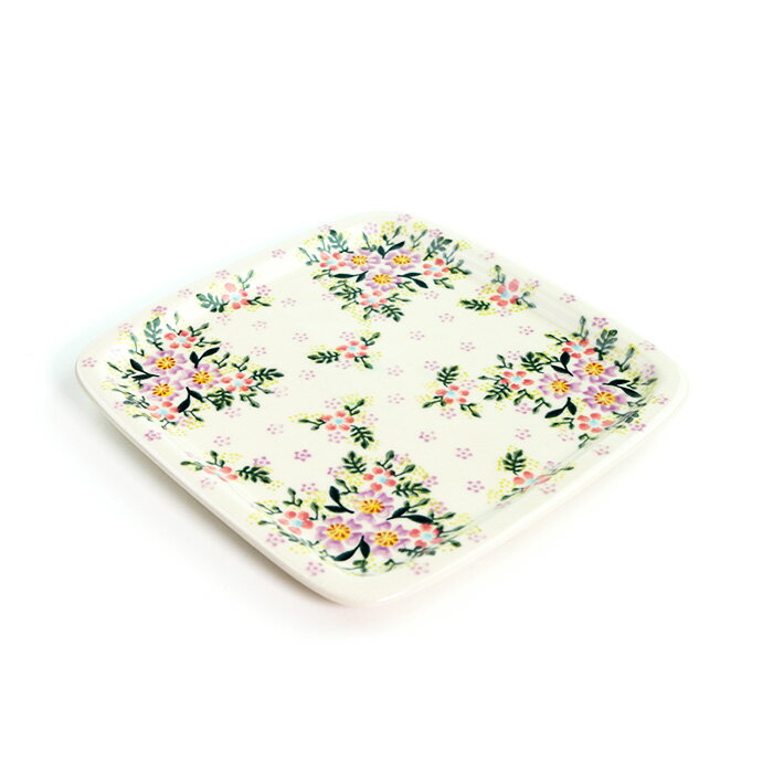 スクエアディッシュ[W262-142]【ポーリッシュポタリー[ポーランド食器・陶器]】 洋食器 プレート 花柄 おしゃれ かわいい 電子レンジ対応 食洗機対応