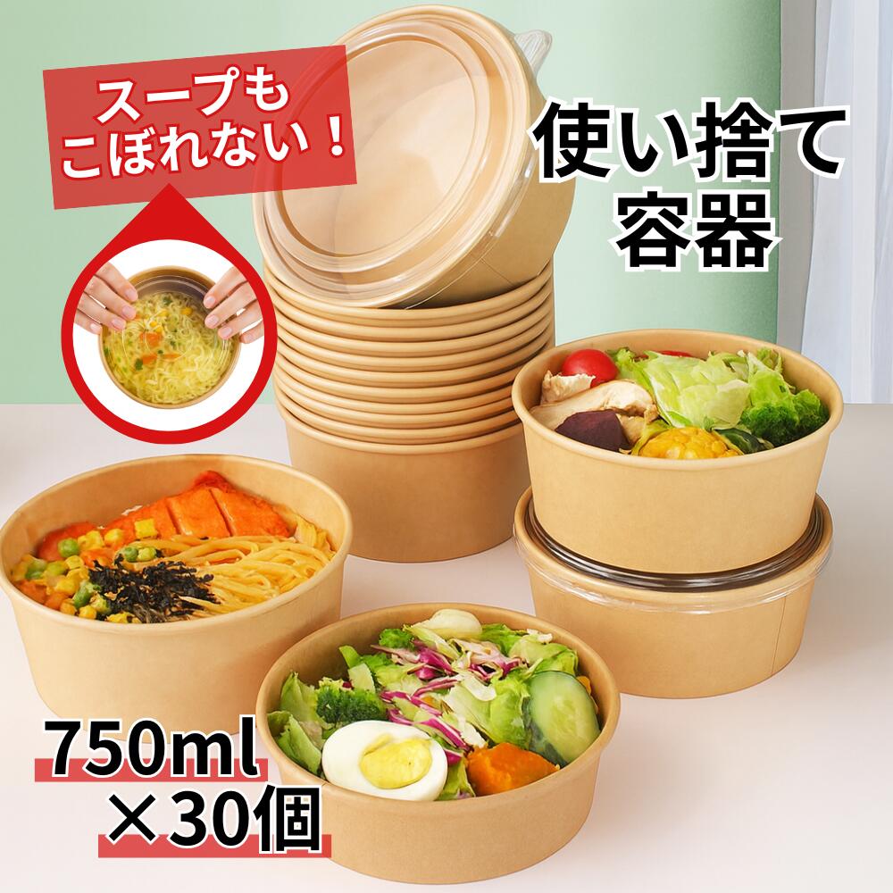 【P5倍+レビュープレゼント】使い捨て弁当箱 使い捨て どんぶり 使い捨て容器 蓋付き ランチボックス クラフト紙ボウル 紙皿 (750ml, 30個セット)