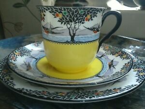 【送料無料】キッチン用品・食器・調理器具・陶器 美しいシェリートリオヴィンセント形状スワローズパターン黄色の底A BEAUTIFUL, SHELLEY TRIO, VINCENT SHAPE, SWALLOWS PATTERN,YELLOW BOTTOM
