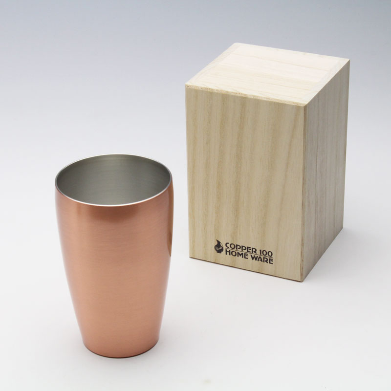 ● お取り扱い上の注意 ・使い始める前に内面、外面を食器用洗剤などでぬるま湯を使って洗ってください。・本品は冷たい飲み物用に造られております。熱い飲み物を入れますと本体が熱くなり火傷の恐れがあります。・飲み口にキズが発生した場合は、ケガをする恐れがありますのですぐにご使用をおやめください。・ご使用後は食器用洗剤でよく洗い充分すすいだあと、水気をよく切り柔らかい乾いた布で乾拭きし、乾燥した場所に保管してください。・飲み物を入れたまま長時間放置しますとめっき剥離や緑青(ろくしょう=錆)発生の原因になりますのでご注意ください。・研磨剤入りスポンジ、金属たわし、クレンザー等で洗わないでください。 COPPER 100HOME WARECOPPER100の信念は技術100・安全性100・機能性100・品質100・デザイン100・価値100というPerfect100%を目指した製品作りをモットーにしています。― 新光金属 ― その他の銅製カップはこちらから↓ ↓ ↓ ビアマグ 340mlビアマグ 460ml鎚目タンブラー(中)鎚目タンブラー(大)MUKU素銅仕上げタンブラー鎚目S型タンブラー(中)COPPER 100HOME WARE 銅製のタンブラーで最高の冷たさを体感!! 熱伝導性に優れた銅。銅の持つ熱伝導は冷たさにも同じことが言えます。保冷性にも優れており、飲み物を冷たいままおいしく味わうことができるのです。15分経っても冷たさが変わらない銅のマグがあなたの常識を変える事でしょう。MUKU素銅仕上げは、ほどよいマット感と上品さを備えた質感。なめらかな肌触りでプレゼントにも喜ばれる逸品です。 注いだ瞬間からカップ全体が飲み物と同じ温度となり、その後15分~20分程度冷えが持続します。その冷たさはガラス製のコップとは比べ物にならないほどだと言います。 真夏のじりじりと焼ける日中や蒸しかえる夜もキンキンに冷えた飲み物が喉を潤し、体を冷却してくれます。バーベキューやキャンプでも重宝しますよ!飲み物が冷たければ冷たいほどよく冷えるので気温との温度差で結露はしますが、その水滴が感じさせてくれる涼感も格別です。 冷たさが続くことから一度使ったらやめられない『銅』のタンブラー。ごろっと氷を入れてコーヒーやジュースに。キンキンに冷やしたビールも最高です♪※本商品は冷たい飲み物用です。また、銅の殺菌性は、O-157やインフルエンザ、ノロウイルスに有効であることが確認されています。安心して使えるのはうれしいポイントですね!