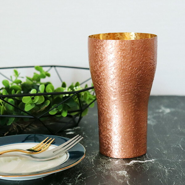 銅製品機能性と手仕事の風合いを兼ね備えた 「WABISABI」(和・美・咲味) 金属加工メーカーと鎚起銅器職人とのコラボタンブラー キンッと冷やしたビールや冷酒を注ぐと、その冷たさがタンブラーにも伝わり一段と冷えた心地でいただけます。持った時や口を付けたときのひんやりとした冷たさは飲んだ時の爽快感を増してくれます。また、飲み口は0.5mmという薄さのため、口あたりの違和感もありません。内側は細かな研磨が施されているため、ビールを注ぐとクリーミーな泡立ちをお楽しみいただけます。 陰影も美しい鬼荒らし模様 デコボコとした表面から打ち手の激しさを感じることのできるテクスチャーが特徴的なWABISABIの「咲味(Sabi)」シリーズ。銅を鎚(つち)で打つことで浮き上がってくる柄は、手仕事ならではの風合いと美しさを感じられます。一見すると荒々しい印象ですが、色合いや見る角度によっては花が咲いたようにも、迷彩柄にもとれます。凹凸により生み出されるシェードが様々な表情を引き出し、ミステリアスな魅力を生み出します。 銅そのものの輝きを持つ無垢 銅本来の輝きをそのまま堪能いただけるのが「無垢」。使い初めは、赤みを帯びた光沢のある金属色を。使用を重ね経年を経ることでレトロな喫茶店で出会うような飴色の光沢や、深みのある鈍い光沢を放つ器へと変化していきます。(無垢の色が気に入っている方は、くすんできたら銅専用のクリーナーなどでこまめに優しくお手入れをしていただくことで明るい光沢を保てます。)また、無垢は内側に金めっきを施しているため、美しい輝きのコントラストも楽しんでいただけます。 メイド・イン・ツバメ認定商品 新潟県・燕市は、金物を中心とした「ものづくりの街」として知られています。そんな燕市の金属加工メーカーが手掛けた機能性の高い銅製タンブラーを鎚起銅器職人により、鎚起による手打ち加工を施しました。手仕事ならではの味わい深いタンブラーに仕上がっています。また、銅製品の発色は銅の表面を人工的に酸化させるものです。伝統的な着色技法により色分けされています。使用するほどに風合いが変わっていく特徴があり、愛用していくうちにモノとしての深みが増していくのも魅力です。 【商品仕様】 サイズ/約口径77×高さ135mm 重 量/約165g 容 量/440cc 材 質/銅(内面金めっき) 日本製 ※食洗器不可 ※冷たい飲み物専用 ※メーカーの在庫・生産状況等により発送までお日にちをいただく場合がございますので、あらかじめご了承ください。 感動をお届けする「世界に一つの贈り物」 名入れギフトの詳細はこちら! ↓ ↓ ↓感動をお届けする「世界に一つの贈り物」 名入れギフトの詳細はこちら! ↓ ↓ ↓ <<ラッピング・のし・メッセージカード無料で承ります。当店のギフトサービスの詳細はこちら!>> 詳しくは以下のバナーをご確認ください。 ↓ 当店のお買い物でご利用いただけるクーポンあります! <<獲得ページはこちら!>> ↓ 感動をお届けする「世界に一つの贈り物」 名入れギフトの詳細はこちら! ↓ ↓ ↓