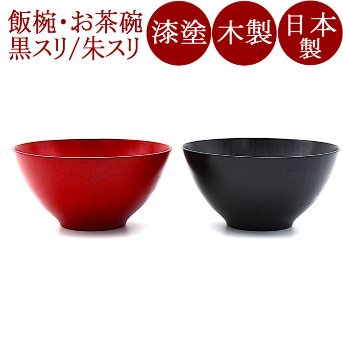 飯椀 黒スリ/朱スリ 木製 漆塗り