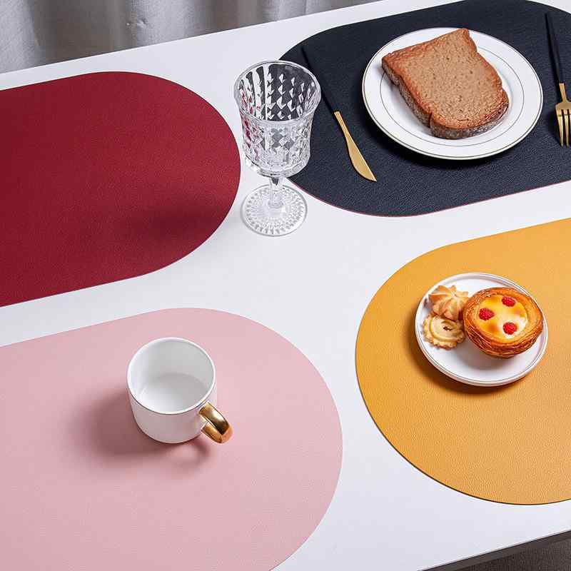 ランチョンマット 北欧風 レザー 撥水 楕円形 断熱 テーブルマット プレースマット コースター ツートンカラー リッチテクスチャ 棕色 黒色 赤色 ピンク系