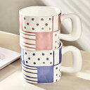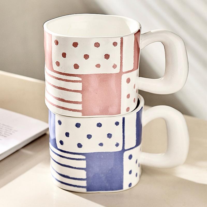 マグカップ かわいい 韓国風 ins風 手作り 手描き 高見え 大容量 取っ手付き ぽっちゃり 白磁 コーヒーカップ ティーカップ 電子レンジ対応 ピンク ブルー