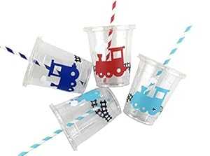 Stesha Party Train Party Cups - Set of 12 Transportation Boy Birthday Supplies Baby Shower