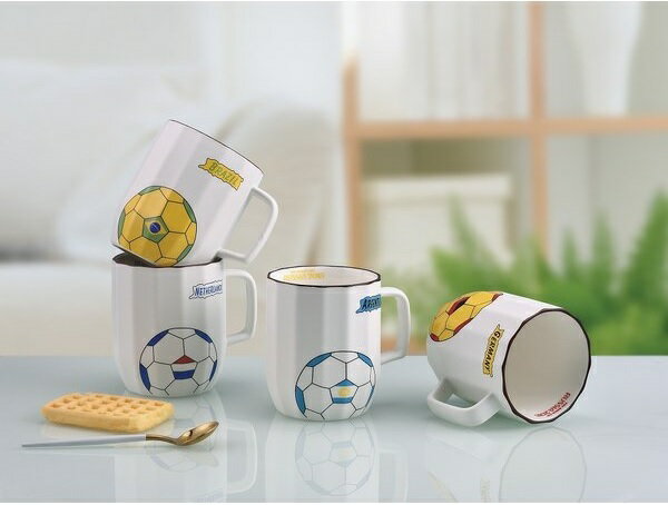 マグカップ 白磁 おしゃれ (サッカーボール 380ml) ギフトボックス付き【コップ レンジOK 大きい カフェ 軽い シンプル 強化磁器 アウトレット 訳あり 業務用 普段使い】