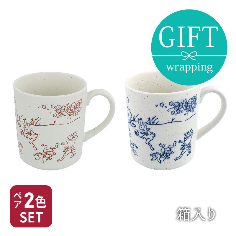 【2000円クーポン 〜11/27 1:59】ペアマグカップ 鳥獣戯画 350cc 茶×青 箱入り 送料無料結婚祝い 新生活 プレゼント 贈り物 マグカップ カップ コップ イラスト サッカー 野球 おしゃれ