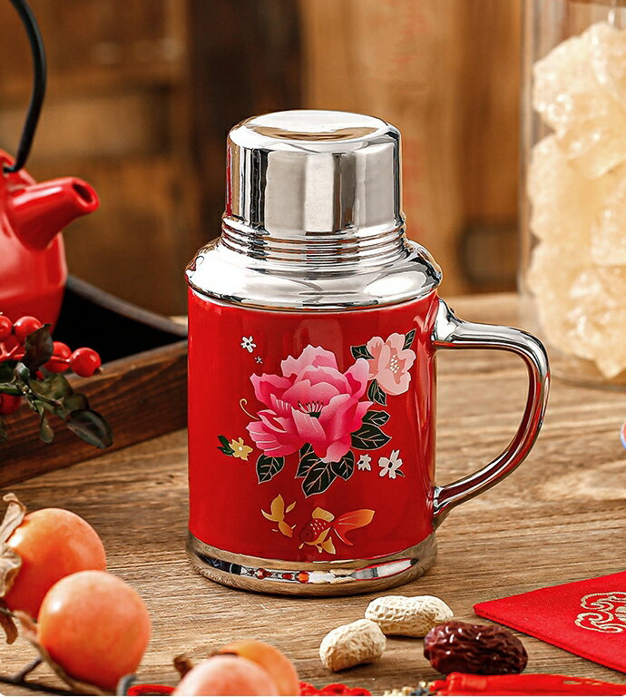 レトロ アンティーク調 家飲み カップ マグ コップ コーヒーカップ レッド 赤い 朱 喜喜 コーヒーマグ かわいい 花柄 牡丹柄 モーニングカップ 中華風 来客用 誕生日 母の日 プレゼント 結婚お祝い IwaiLoft