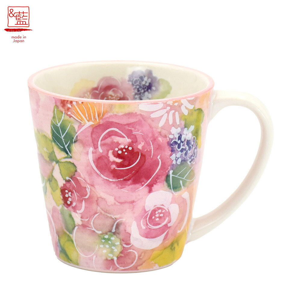美濃焼 【&藍】 花あわせマグカップ バラ | マグ カップ コップ お茶 コーヒー 紅茶 和食器 和風 食器 オシャレ モダン レトロ 花柄 おもてなし プレゼント ギフト 贈り物 新築 結婚 新築祝い 結婚祝い 出産祝い 内祝い お返し お祝い 誕生日 母の日 敬老の日