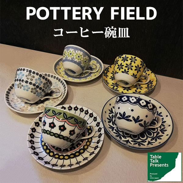 【取寄品】 ポタリーフィールド コーヒー碗皿コーヒーカップ 来客用 北欧風 花柄 おしゃれ かわいい 可愛い ポーランド食器風 ポーリッシュ柄 取り皿 取皿 電子レンジ対応 食洗機対応 ギフト お祝い プレゼント 母の日 結婚祝い 美濃焼 日本製