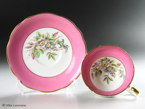 【フォーリー】ピンク&ホワイト ワイルドフラワー カップ&ソーサー