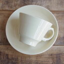 イギリスの陶磁器メーカー Wood's ware のカップ&ソーサーです。 Jasmine というシリーズのものです。 全体的に柔らかなイエローに塗られたシンプルなデザインで、 カップやソーサーにボーダー状の溝が入っており、 持ち手下部に小さな装飾があります。 1940年代ごろのものと思われます。 状態に関して、特に目立つチップやヒビはありません。 カップ内側底面に少し拭き傷のような細かな擦り傷があります。 ソーサー中央に細かなスレや擦り傷があります。 そのほか、若干のスレや擦り傷はあるかと思いますが、 全体として傷が少なく、ツヤがあり、 ヴィンテージ品としてはきれいな状態です。 製品本来の品質として、ちょっとした色むらや色汚れ、 小さな黒点や不整形等はある場合があります。 詳細は写真にてご確認ください。 --- ■カップ: 高さ約 7cm 口径約 8.9cm ■ソーサー: 直径約 14.3cm ※ 写真に写りこんだデコレーション等はお届け内容に含まれません。
