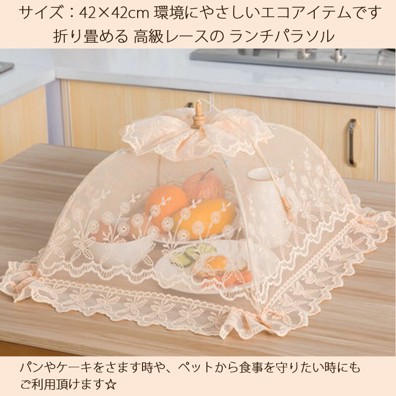 ★倉庫移転の為、総売り尽くしセール!★ 高級レース ランチパラソル フードカバー ハエいらず キッチンパラソル 可愛い 無地 蝿帳 食卓カバー 食卓傘四角形 オシャレ おしゃれ 食卓蚊帳 蝿帳 アウトドア おやつ ごはん 食卓覆い 虫よけ ホコリよけ 折りたたみ式 新生活