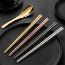 箸 304ステンレス製 韓国式 フラット箸 ソリッド 無垢 高級感 和食 焼肉 BBQ レストラン用 業務用 家庭用 食洗機対応 スプーン箸セット ミラー研磨 おしゃれ 選べるカラー ゴールド ローズゴールド ブラック シルバー