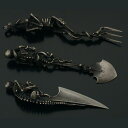 カトラリー ハロウィン スケルトン 骸骨デザイン パーティーグッズ 金属製 高級感 レトロ調 ナイフ フォーク スプーン 3点セット ブラック ゴールド シルバー プレゼント