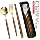 カトラリーセット お弁当 木製 ステンレス ゴールド 高級感 北欧 韓国 おしゃれ お箸 スプーン フォーク 3点セット 食器 カトラリー セット ケース付き コンパクト 持ち運び 便利 携帯 通勤 通学 大人 学生 食洗機対応 【送料無料】