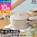 ブルーノ 【選べる豪華特典】 ホーロー鍋 ホーロー両手鍋 20cm BHK280 両手鍋 鍋 琺瑯鍋 ほうろう鍋 ココット 富士ホーロー レトロ 20cm キャンプ 蓋付き 深型 ホーロー ih対応 かわいい カレー スープ ガス 味噌汁 炊飯 野菜 煮込み 北欧 BRUNO