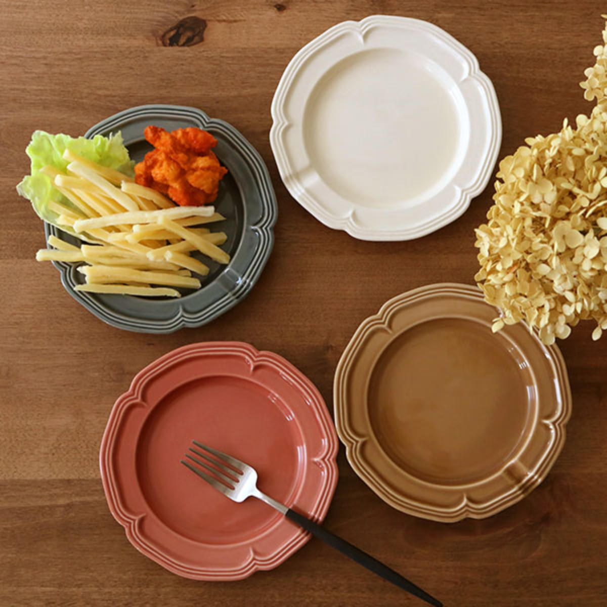 サイズ約 幅17.5×奥行17.5×高さ2.3(cm)重量約 320g内容量1枚材質磁器(瀬戸焼)種類ミルクホワイト、オリーブグレイ、フラミンゴピンク、ゴールドベージュ生産国日本製食器洗い乾燥機使用可能電子レンジ使用可能注意事項※商品ページ内には別の商品を含む画像を使用しています区分返品・キャンセル区分(小型商品)ギフトラッピングページを見るプレート ソレイユ シングル M 皿おすすめポイント※商品ページ内には別の商品を含む画像を使用しています使いやすいサイズプレート 17.5cm大皿料理の取り皿としてちょうど良いサイズ感です。ドーナツやマフィンなど、ちょっとしたスイーツをのせるプレートとしてもおすすめです。華やかなお花の食器 瀬戸焼「ソレイユ」花の形をモチーフにした、やわらかで華やかなデザインが魅力。テーブルに並べるだけで、食卓がパッと明るく、かわいらしい雰囲気になります。日本有数の陶磁器の産地・愛知県瀬戸市で作られた日本製の器です。商品詳細カトラリーを置けるくぼみ付きお皿のフチにくぼみがあるので、食事中に箸やスプーン、フォークをちょっと置くのに便利です。重ねてスッキリ収納スタッキングできるので、カラー違いで揃えても、場所をとらずに収納できます。電子レンジ・食洗機対応電子レンジで温め直しや食洗機に対応しているので、お手入れしやすく、毎日気軽にお使いいただけます。商品画像カラーご注意点陶器・磁器商品の特性について原料や製造方法により、上記のような特性がみられる場合があります。 ひとつひとつのうつわの持つ個性、温かみある風合いとしてお楽しみいただければ幸いです。※上記特性の度合いは、商品によって異なります。※商品の色味は、お客様のお使いのモニター設定、お部屋の照明等により実際と異なる場合がございます。※上記理由による、返品・交換はお受けできません。ご了承の上お買い求め下さいますようお願い致します。シリーズ紹介プレート ダブルプレート ハイブリッドプレート 10.5cmプレート 17.5cm【▲このページの商品】関連キーワード:電子レンジ レンジ 食洗機 対応 OK 薬味皿 リム皿 陶器風 輪花皿 箸休め 箸置 パン皿 ケーキ皿 輪花 取皿 お菓子 おつまみ ケーキ パン サラダ お寿司 箸やすめ カトラリー 箸 置き 和食器 モダン うつわ 容器 無地 オシャレ お洒落 大人かわいい 可愛い アンティーク レストラン ビストロ 喫茶店 アンティーク風 テーブルウェア カフェ風 カフェ食器 オーブン 使える 可能 チンできる レンチン おすすめ 人気 オススメ プレゼント 贈り物 ギフト お祝い お返し 引っ越し祝い 新生活 LH19478 af-0020-01 af-0020-02 af-0020-03 af-0020-04関連商品はこちらプレート ソレイユ ハイブリッド 皿 2,640円プレート ソレイユ シングル S 皿 979円プレート ソレイユ ダブル ハイブリッド シン979円~プレート ソレイユ ダブル 皿 1,430円プレート 16cm フィオーラ ドルチェコレク715円プレート 18cm L ファムプレート Fam1,980円プレート 皿 ファンレスト 長角 3,080円皿 ぎんはく 花皿 4点セット 4,400円プレート 23cm モア 皿 食器 洋食器 磁2,090円プレート 23cm カティ 皿 食器 洋食器 1,780円皿 菊花和膳 小皿 取り皿 中皿 大皿 1,045円~プレート 20cm リム Calin 皿 洋食2,200円