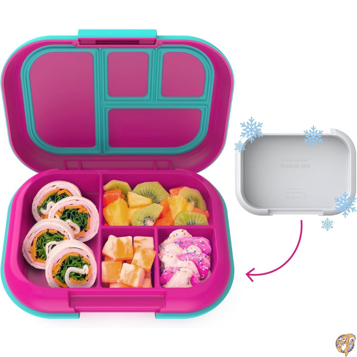 【クーポン配信中】Bentgo Kids Chill Lunch Box - Leak-Proof Bento with Removable Ice Pack & 4 Compartments for On-the-Go Meals Microwave Dishwasher Safe, Patented Design,(Fuchsia/Teal)