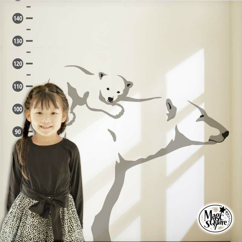 ウォールステッカー 身長計 転写式【おんぶシロクマ】壁掛け 白くま しろくま 白熊 モノトーン 大きい 等身大 親子 子供 赤ちゃん インテリア おしゃれ かわいい カッティングシート 壁シール 北欧 雑貨 プレゼント 受注生産 新生活