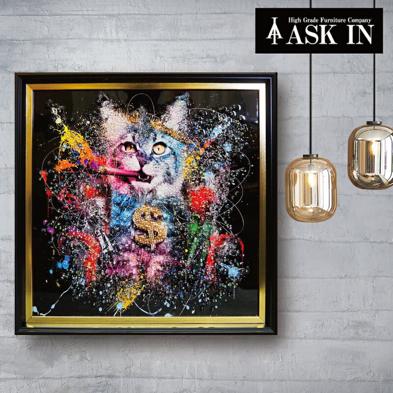 クリスタルアート 41x41cm ファンキーキャッツ422 猫 動物 アートパネル おしゃれ キラキラ モダン 可愛い ゴージャス オフィス サロン カフェ 店舗 美容院 バー レストラン 開業祝い 新築祝い 水晶 カラフル プレゼント お祝い ギフト 記念日 誕生日 ASK IN アスクイン