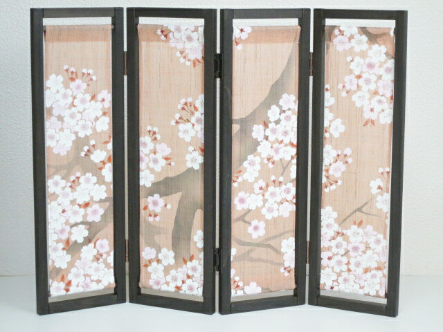 ミニ屏風 四連 さくら 送料無料(沖縄・除外)ミニ 衝立 屏風 桜 春 四季 インテリア 日本 画 プレゼント 洛粋 ルシエール