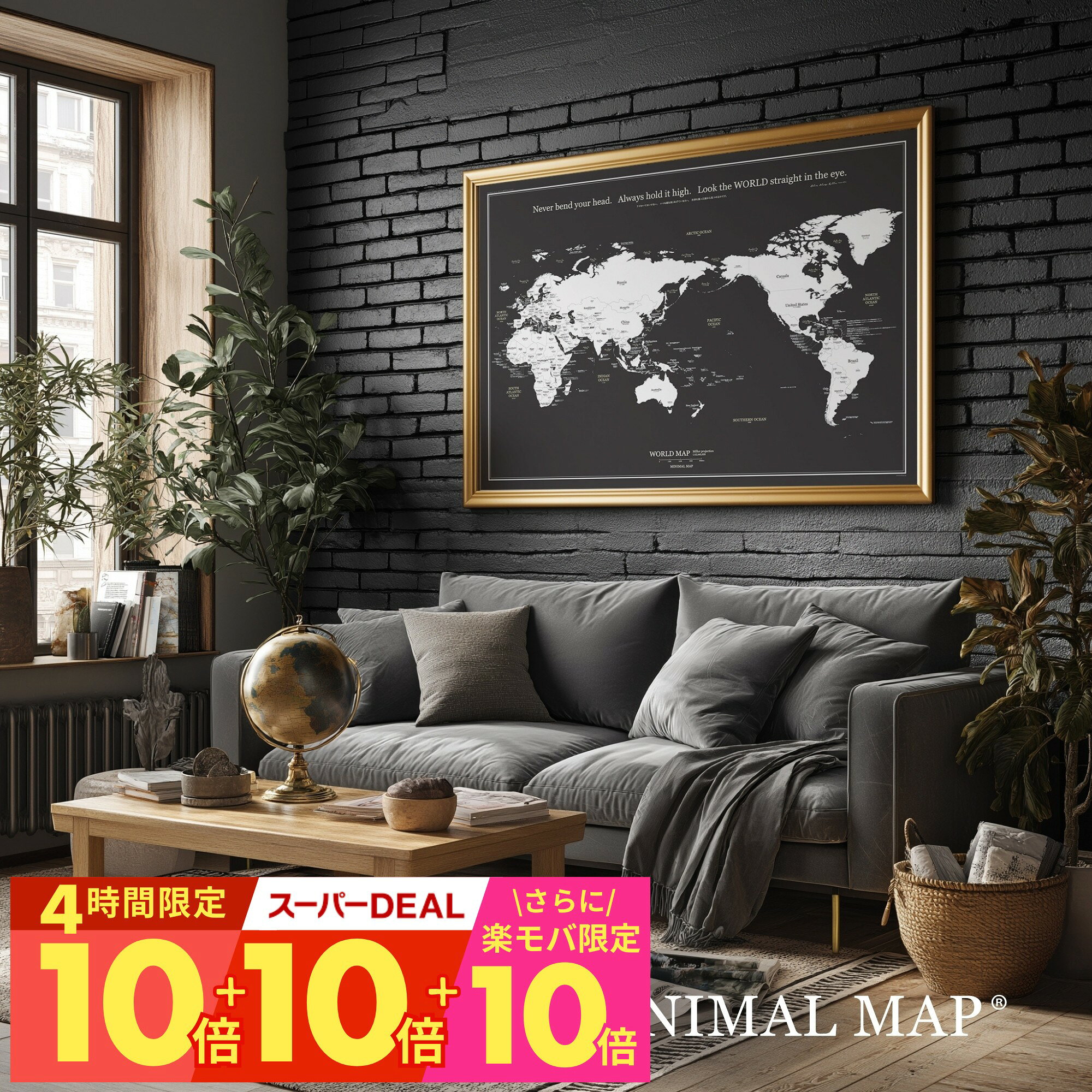 \スーパーSALE/世界地図 ポスター A2-A0|ブラック|英語/日本語 選べる|名入れ/メッセージ対応|ラミネート/パウチ(耐水)/パネル/フレーム対応|MINIMAL MAP:ミニマルマップ
