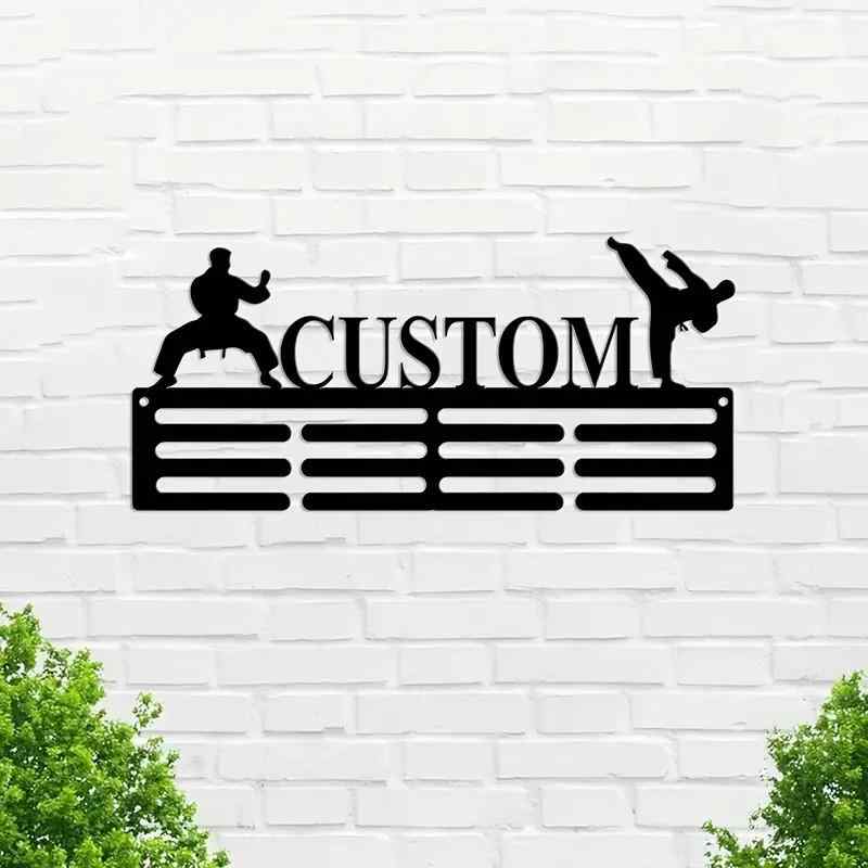 メダルハンガー メンズ 空手道 名入れ 壁掛け アイアン製 12本バー メダル リボン収納 ディスプレイ スポーツ記念品 ギフト 贈り物 モダン シンプル ブラック
