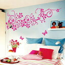 ウォールステッカー 花柄パターン ピンク 蝶 フラワー 模様 ブラック 北欧 シール