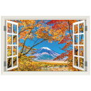 ウォールステッカー 富士山 紅葉 窓枠 日本製 秋 湖 沼 fuji 自然 壁紙 シール ポスター 絵画 お風呂 浴室 DIY リフォーム リメイク