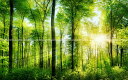 絵画風 壁紙ポスター (はがせるシール式) 【特大上下2枚仕様】森林 森林浴 日光浴 陽射し 太陽 眩しい 緑の森の木々 癒し キャラクロ SNR-101L1W(パノラマL版 1843mm×576mm×2枚)<日本製> ウォールステッカー お風呂ポスター