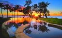 絵画風 壁紙ポスター (はがせるシール式) 夕暮れのワイキキ リゾート ビーチ プール 海 ハワイ キャラクロ HWI-006W2 (ワイド版 603mm×376mm) <日本製> ウォールステッカー お風呂ポスター
