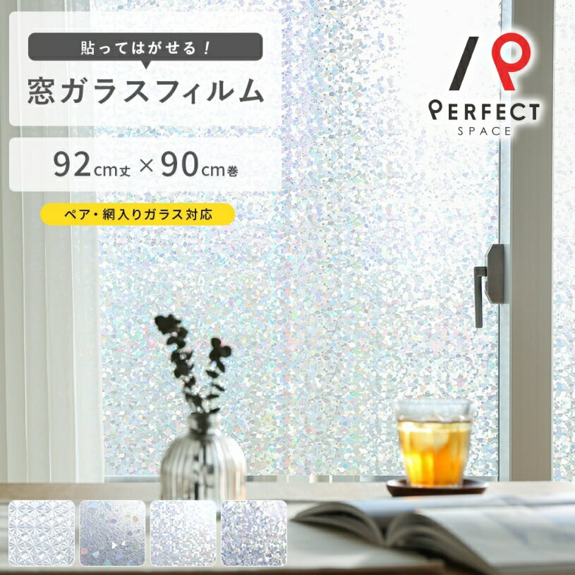 何度も貼れる窓ガラスフィルム 目隠し 遮熱 節電 Low-E複層ガラス対応 ペアガラス 網入りガラス 遮熱フィルム UVカット率99% プライバシー保護 飛散防止 防災 ステンドグラス すりガラス 半透明 92×90cm 小窓 水だけで貼れる おしゃれ