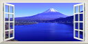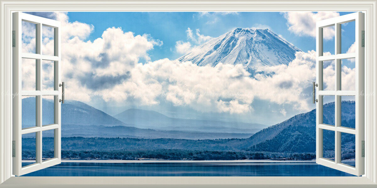 絵画風 壁紙ポスター (はがせるシール式) -窓の景色- 天空の富嶽 ”凱雲快晴”にそびえ立つ富士山 白富士 本栖湖 【窓仕様/トリックアート】 キャラクロ M-FJS-005MS1(パノラマS版 1152mm×576mm)<日本製> ウォールステッカー お風呂ポスター