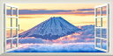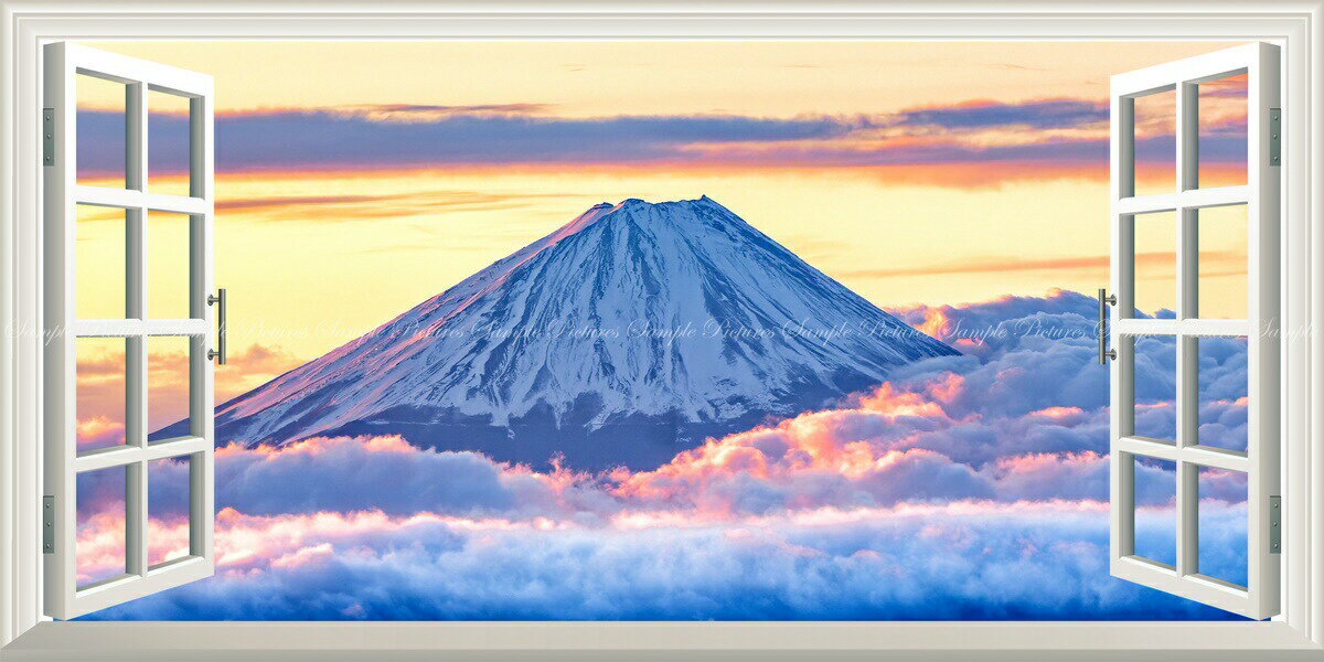 絵画風 壁紙ポスター (はがせるシール式) -窓の景色- 黄金富士 八ヶ岳から望む朝日に染まる雲上の富士山 朝焼け 神秘的 絶景 【窓仕様/トリックアート】 キャラクロ M-FJS-012MS1(パノラマS版 1152mm×576mm)<日本製> ウォールステッカー お風呂ポスター