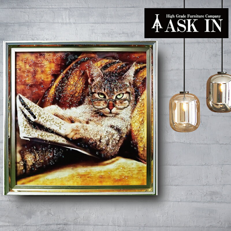 クリスタルアート 水晶 アートパネル 41x41cm 猫 ねこ キャット 動物 アートパネル おしゃれ 可愛い ゴージャス オフィス サロン カフェ 店舗 美容院 バー レストラン 開業祝い 新築祝い カラフル プレゼント お祝い ギフト 記念日 誕生日 ASK IN アスクイン ネコロンデ
