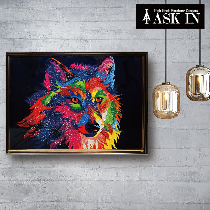 【超お得!! 通常7980円のところ3000円でトゥインクルシリーズがついてくる】クリスタルアート アートパネル 86x66cm 写真 おしゃれ キラキラ ゴージャス オオカミ アスクイン ASKIN ウルフ