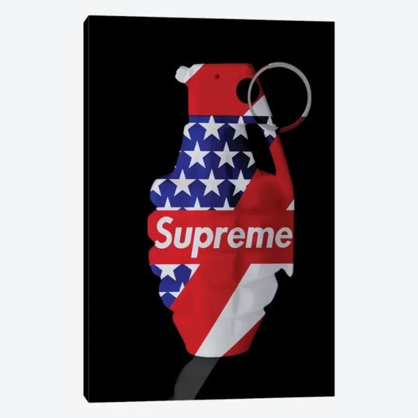 【送料無料】 米国発のお洒落なオマージュアート Stars And Stripes Grenade シュプリーム Supreme キャンバスアート 絵画 インテリア 模様替え 店内装飾 結婚祝い 受付 会議室 待合室