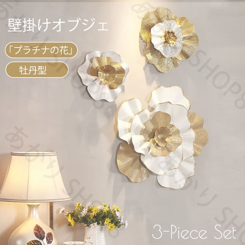 牡丹 錬鉄製 ウォールアート 壁掛けデコレーション 3Dゴールド 3点セットメタルウォールデコレーション 牡丹